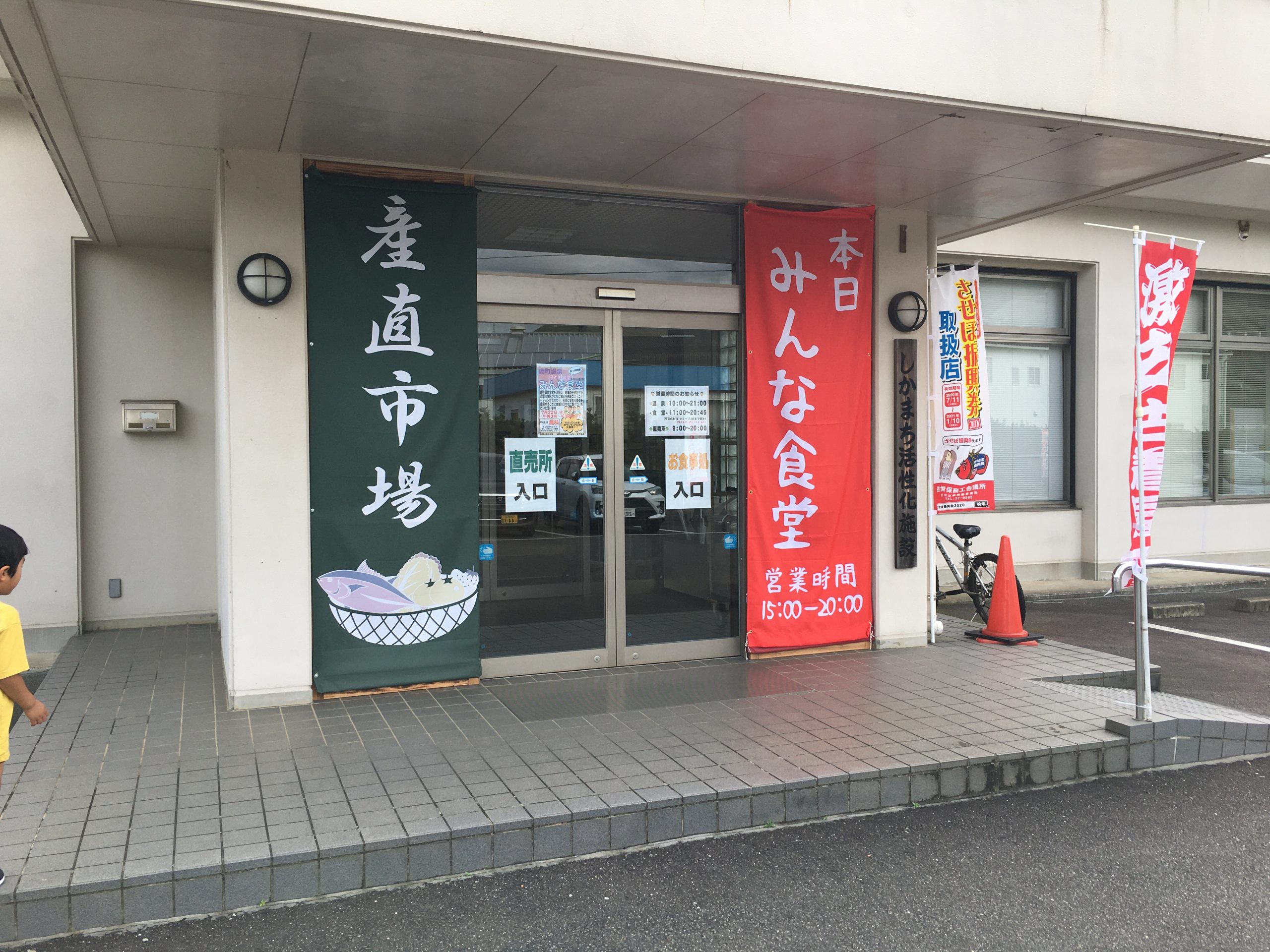 しかまち活性化施設の入り口には赤の垂れ幕が